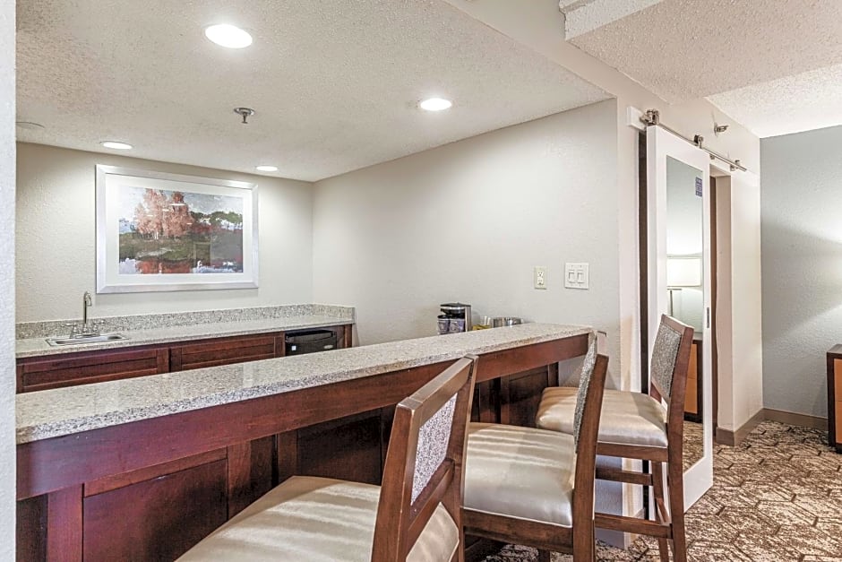 Complimentary WiFi, desk with ergonomic chair, sofa bed, mini-refrigerator, 37-inch HDTV. Settle into this suite with one Sweet Dreams® by DoubleTree signature king-sized bed and a full-sized sofa bed. Sit back in the armchair and watch the flat-screen TV, or refresh in the bathroom with granite-topped vanity and luxury bath products. Take advantage of the complimentary WiFi and get some work done at the desk. Other amenities in this suite include a mini-refrigerator, coffee machine, and alarm clock radio with MP3 player connectivity. Sleeps up to 4 adults.
